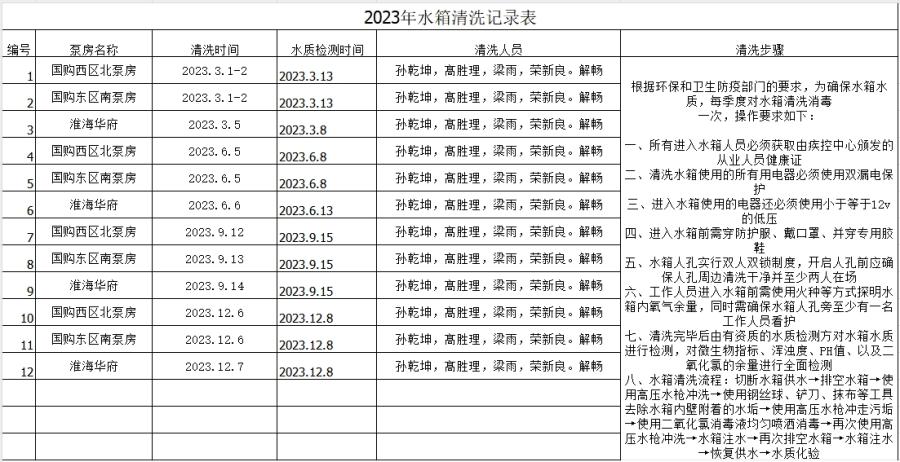 2023二次供水水箱清洗臺(tái)賬