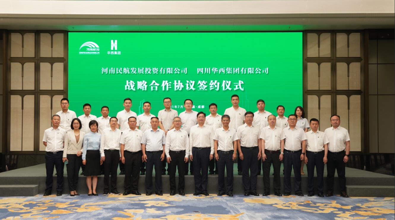 7月16日,河南民航發(fā)展投資有限公司(簡(jiǎn)稱河南航投)與四川華西集團(tuán)有限公司(簡(jiǎn)稱四川華西)在成都舉行了簡(jiǎn)短而熱烈的簽約儀式,兩家跨省國(guó)企約定,在民航產(chǎn)業(yè)展開(kāi)全面合作。河南航投黨委書記、董事長(zhǎng)張明超,黨委副書記、總經(jīng)理、副董事長(zhǎng)劉建葆,四川華西黨委書記、董事長(zhǎng)楊斌,黨委副書記、總經(jīng)理、副董事長(zhǎng)馬林出席。張明超、楊斌分別致辭,劉建葆、馬林代表雙方簽訂《戰(zhàn)略合作協(xié)議》,河南航投基礎(chǔ)產(chǎn)業(yè)公司董事長(zhǎng)趙楠和貴州場(chǎng)道公司執(zhí)行董事劉國(guó)呈代表子公司簽訂《合資合作協(xié)議》。